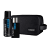 -El conjunto incluye un neceser de tonos azules o con destellos, para guardar los productos o artículos de tocador.
