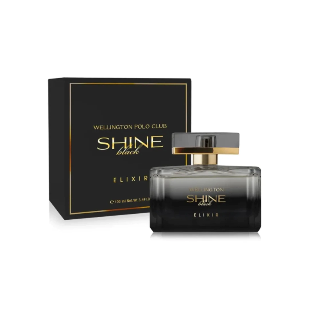 El Wellington Shine Black Elixir EDP 100ml es una fragancia femenina que se caracteriza por ser una composición oriental floral amaderada, diseñada para resaltar con elegancia en ocasiones especiales y uso nocturno debido a su estela intensa.